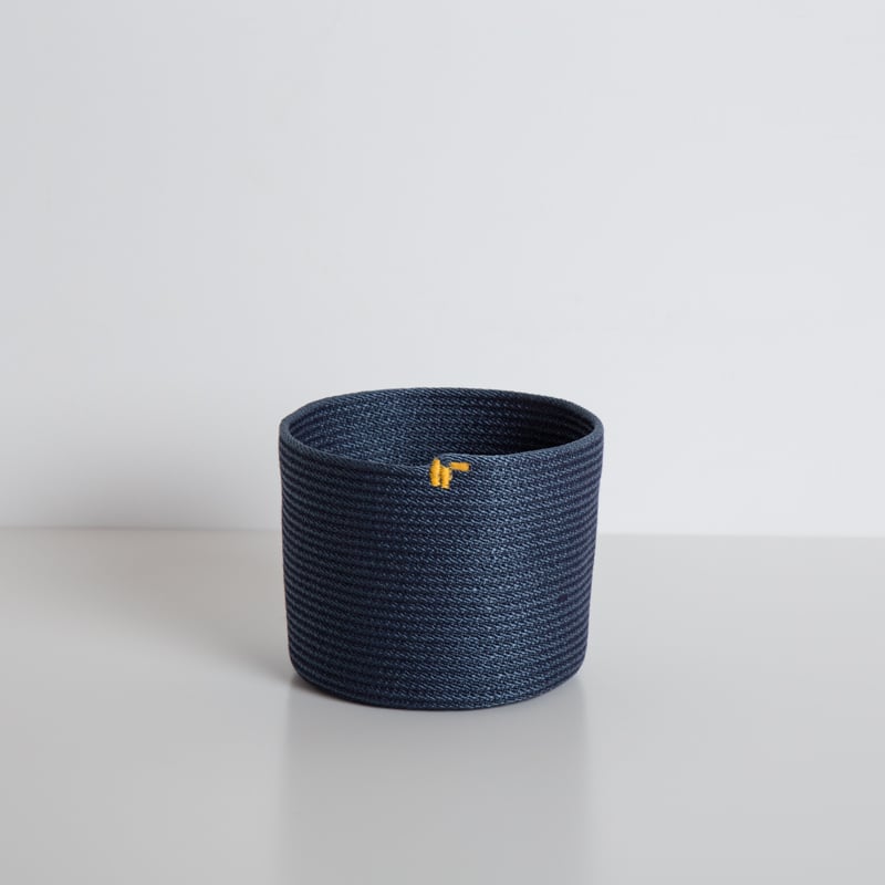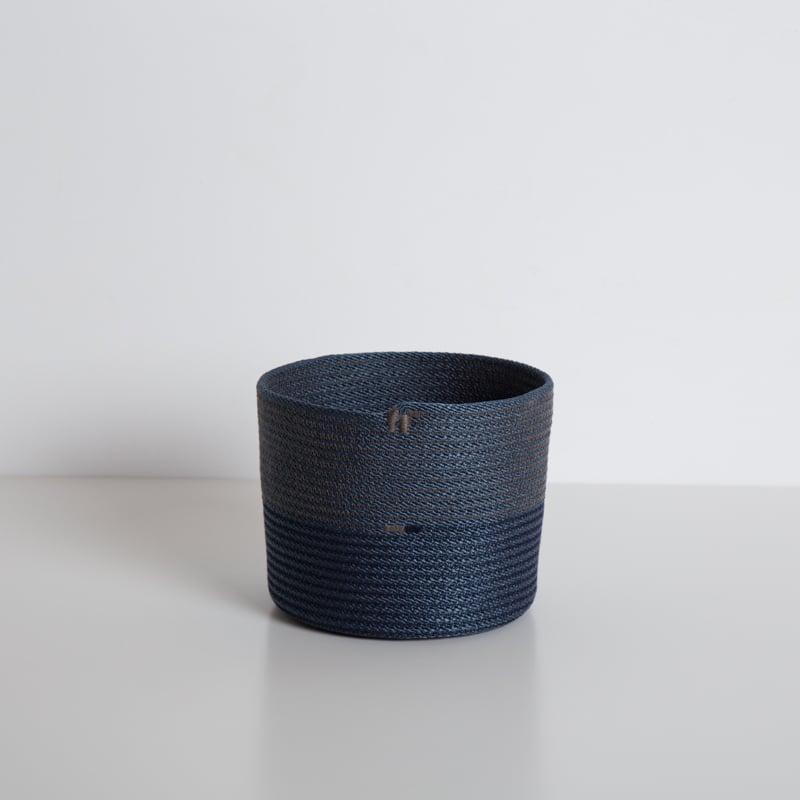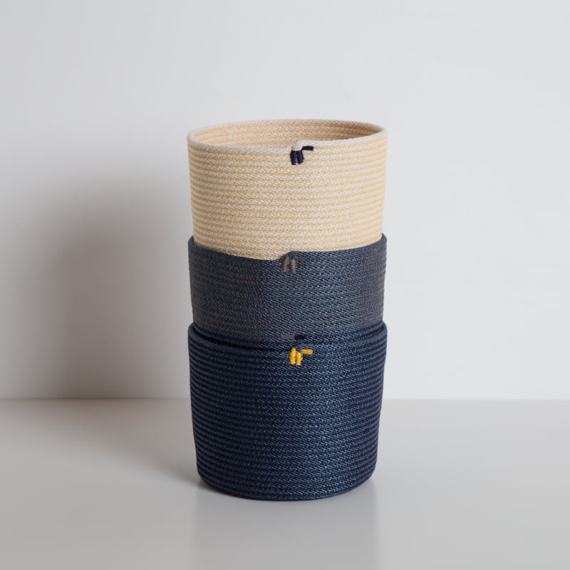 As a part of our Limited Edition series, we have created a new edition of our 50' Tall baskets. A simple and modern small vase shape, these vessels are made from 50 feet of #6 100% cotton cord or our navy nylon cord that is coiled and stitched with sewing thread.. The resulting textile is flexible but stiff enough to hold its shape.